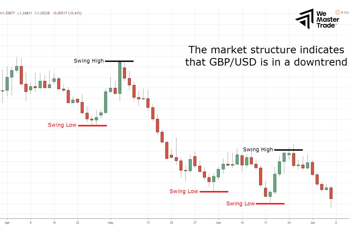 Downtrend: Price makes lower highs and lower lows.