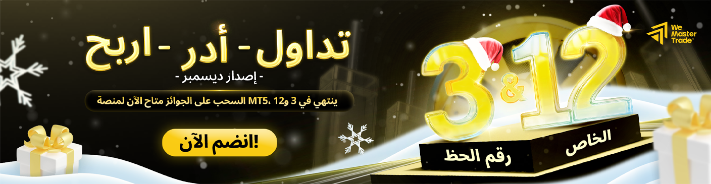 فعالية MT5 Trade Spin Win – إصدار ديسمبر أصبحت مباشرة الآن، لتجلب الحماس ولحظات الفوز طوال شهر ديسمبر. ومع اقتراب نهاية العام، كل خطوة تقوم بها تقرّبك من فرص مذهلة ومن إجمالي جوائز يصل إلى 350,000$.