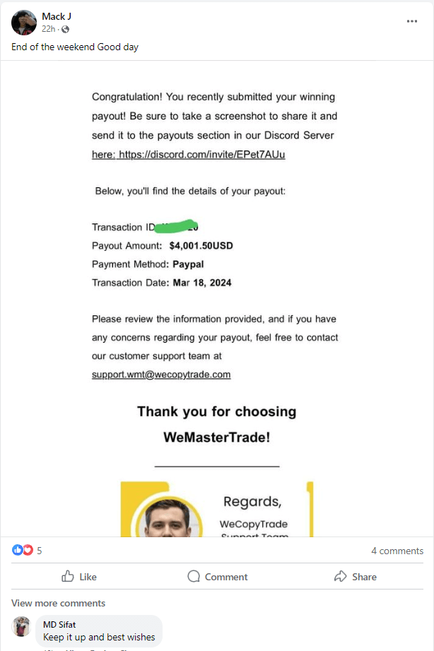 استمع من متداولين ناجحين حققوا النجاح بفضل تمويل WeMasterTrade ودعمها."